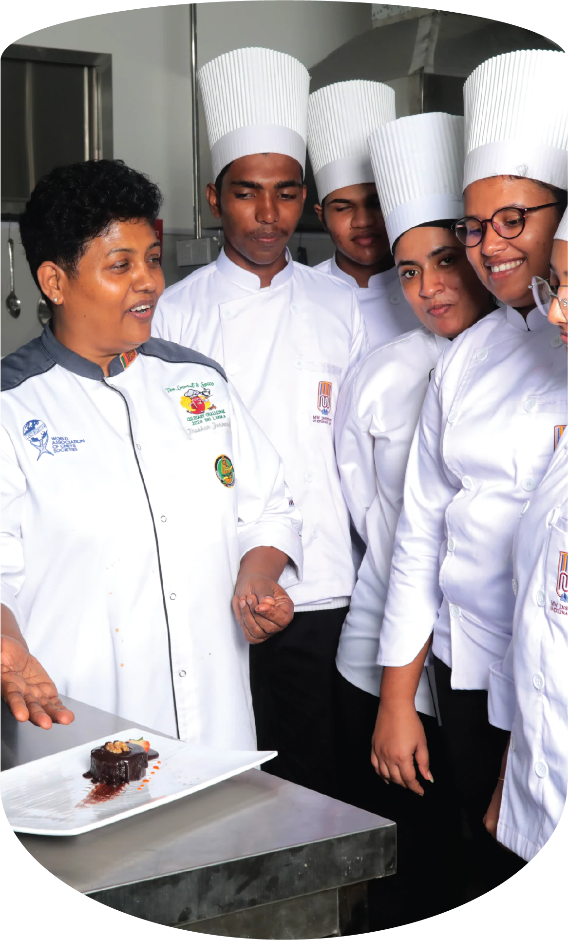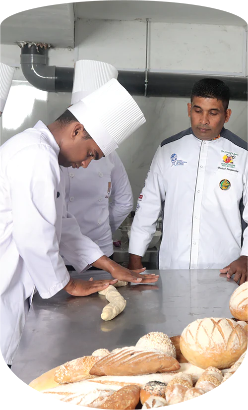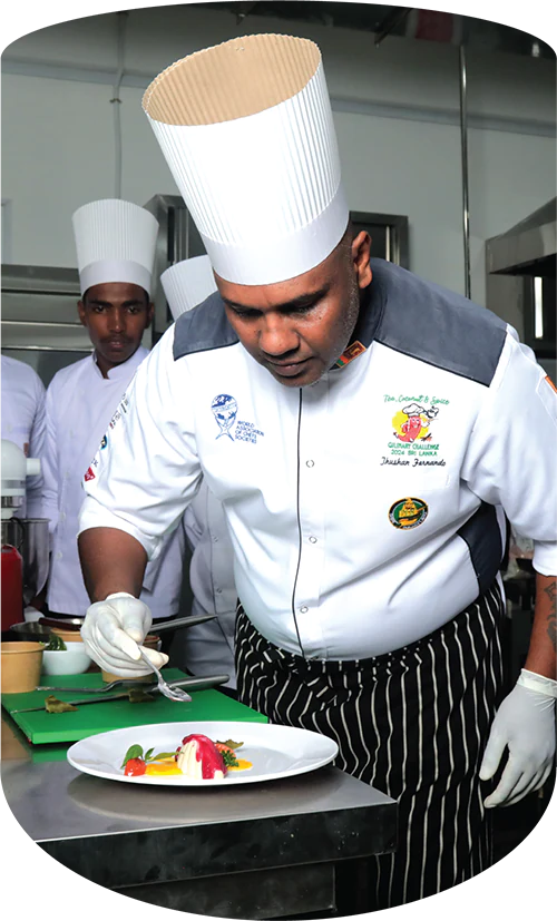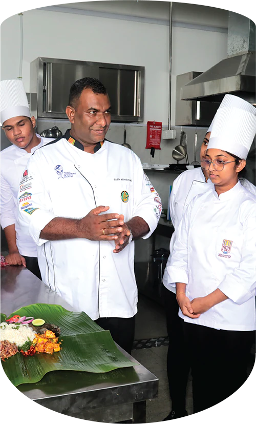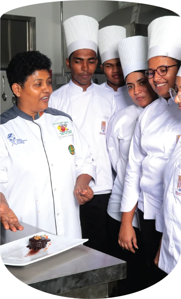 Led by Chef Madhawa Weerabaddhana, a renowned culinary educator and Director of Training at the Chefs’ Guild of Lanka, our expert team of trainers offers world-class mentorship. Chef Madhawa is also the lead compiler of Sri Lanka’s Professional Cookery Curriculum Manual, ensuring our students receive up-to-date, industry-relevant training. Our six-month full-time program, endorsed by TVEC, covers 18 comprehensive modules includIng Culinary English, food preparation & sustainability, art of food smoking and dehydration, individual menu production experience with over 250 dishes from international and ethnic cuisines such as Thai, Chinese, Sri Lankan, Arabic, and Japanese.